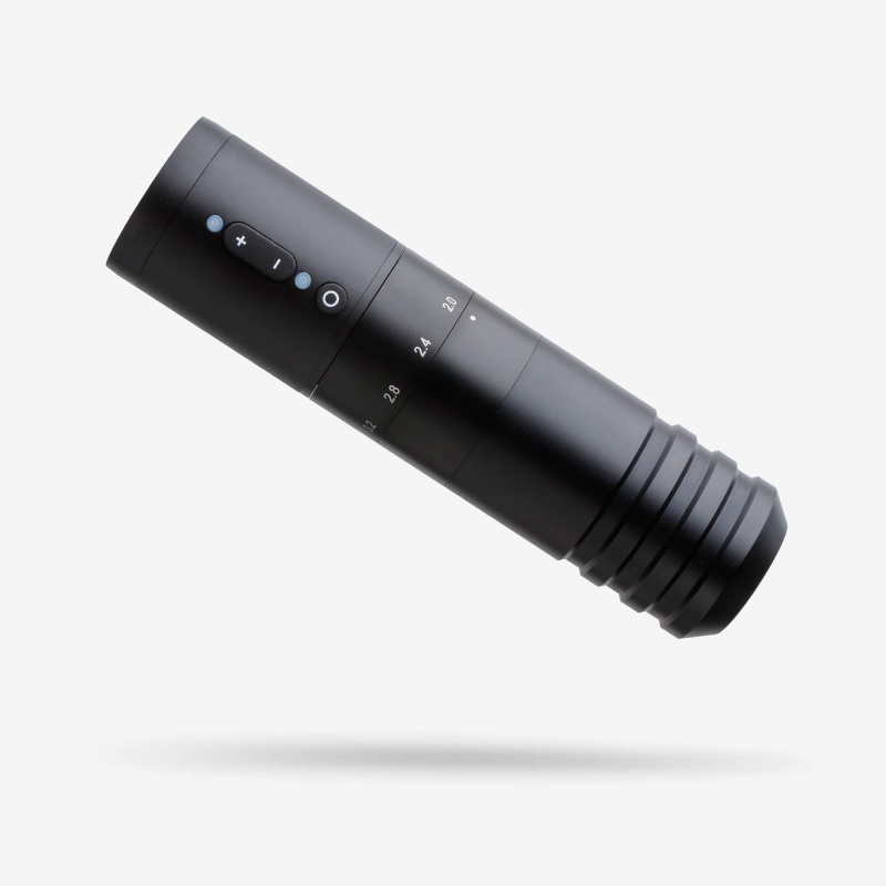 Механизм регулировки хода позволяет выбирать из шести разных положений, от 2,0 мм до 4,0 мм. Это дает вам полный контроль над глубиной прокола и интенсивностью цвета. Просто поворачивайте регулировочное кольцо, чтобы получить нужный эффект.