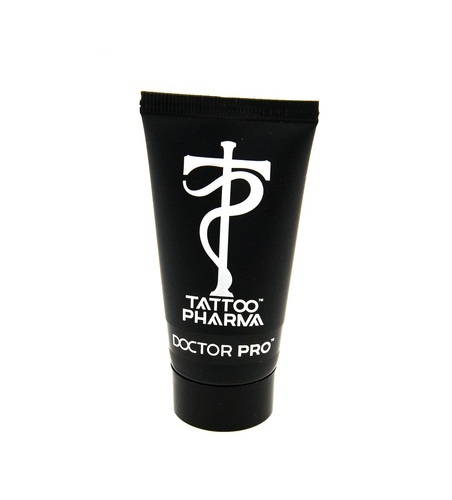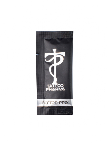 - Тонким равномерным слоем нанесите гель Doctor PRO на предварительно очищенную поверхность свежей татуировки, закрепите компресс из одноразовой пеленки и липкой ленты (пластыря).