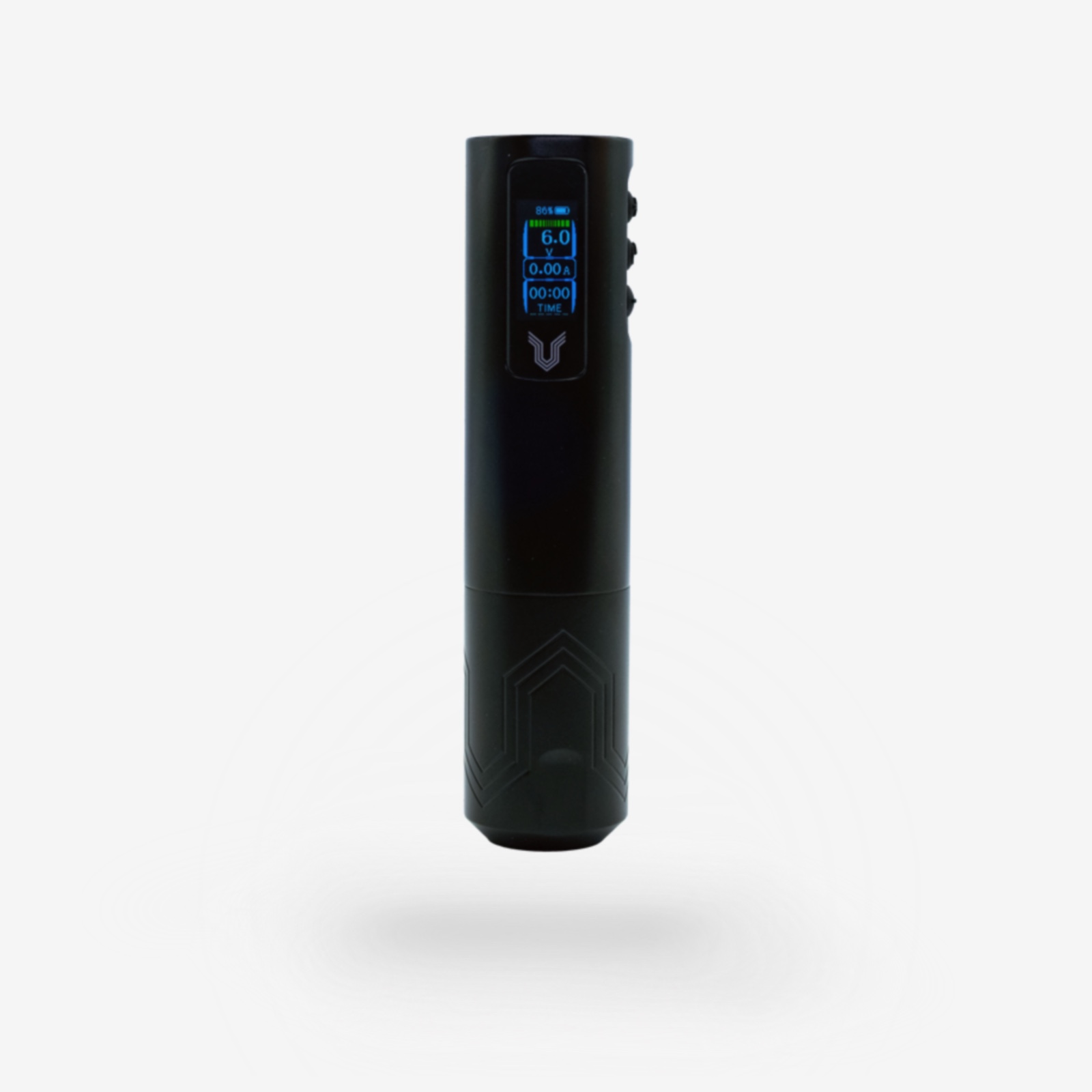 Вольтаж регулируется кнопками «+» и «−». Включение и выключение осуществляется удержанием центральной кнопки питания, короткое нажатие ставит машинку на паузу.