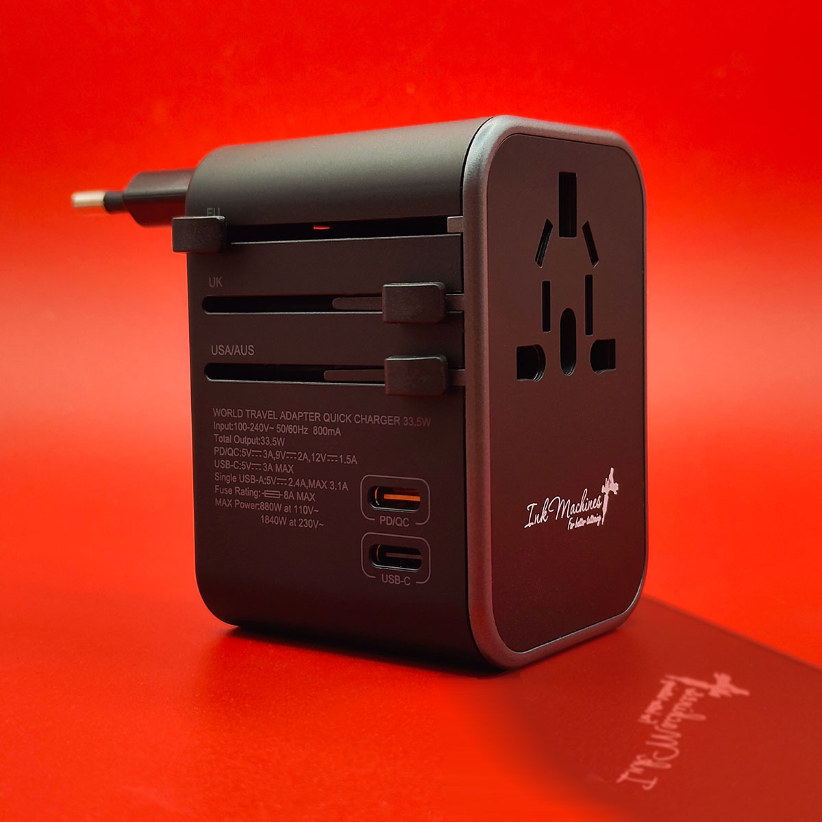 Универсальное дорожное зарядное устройство с разъемами для розеток Россия, ЕС, Великобритании и США/Австралии.